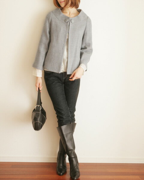 全身スタイリング24 <冬クラシカルの王道ボレロ風コートSET> 価格: 15,225円 レビュー評価:0.0 レビュー数:0 商品詳細ふんわり上品なウールボレロ風コートとデニムレギンスの甘辛バランスが絶妙なコーディネイトです。これだけで冬のお出掛けスタイルが完成。デニムレギンスは1年中活躍してくれます。SPEC◆GROSSO LANO ウールボレロ風コート(杢グレー)size着丈:50.5cm身丈:52.5cm裄丈:69cm胸囲:92cm首周:64cm袖口周:32cm素材 表地/ウール80%、ナイロン20%裏地/ポリエステル100%made in China 【お手入れ方法】ドライクリーニング(セキユ系)ができます。タンブラー乾燥禁止。アイロンは中温で当て布をご使用下さい。 ◆10オンスストレッチデニムレギンス(ブ Supported by 楽天ウェブサービス |